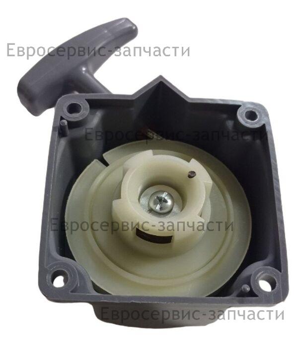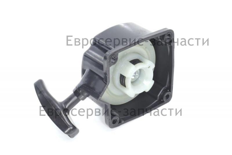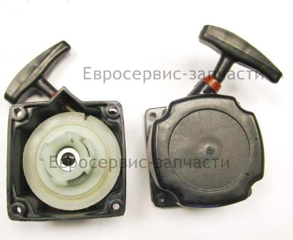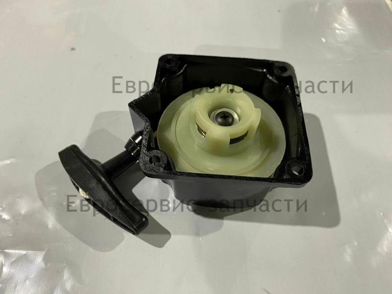 Стартер используется для обеспечения запуска двигателя путем проворачивания коленвала резким рывком каната.