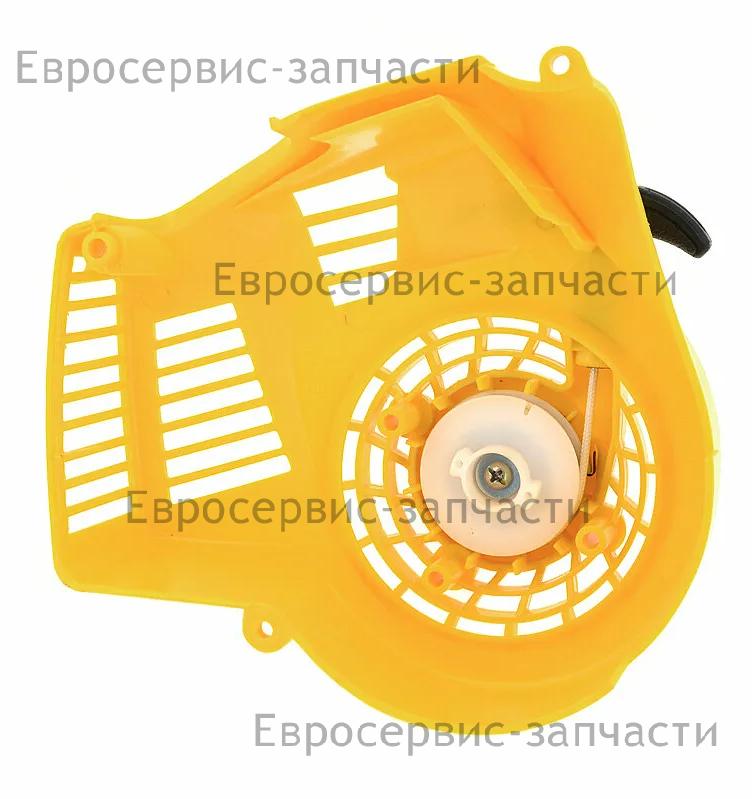 Стартер ручной используется для обеспечения запуска двигателя путем проворачивания коленвала резким рывком каната. Подходит для бензиновых воздуходувок CHAMPION GBV326S, GB226.